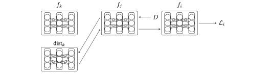 Because the distilled model acts as a proxy for the network, models can be fully taken off-line and evaluated. Recursion through the network is also cut between components allowing for arbitrary network graphs. If models go offline, their peers can use the distilled versions in-place. Private data 6 can be validated over the distilled models instead of querying the network. Eventually, components can fully disconnect from the network using the distilled models to do validation and inference offline.